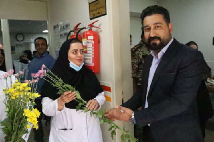 دکتر ابوالفضل زاهدی، در این بازدید با حضور در بخش‌های مختلف بیمارستان، ضمن دیدار با پرستاران و کارکنان، با اهدای شاخه گل از زحمات شبانه‌روزی آنان قدردانی کرد.