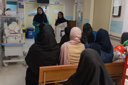 فواید تغذیه باشیر مادر توسط ماما خانم سلمانی و ترویج زایمان طبیعی زایمان بدون درد با کپسول انتونکس واسپاینال و اپیدورال توسط ماماخانم محلوجی آموزش داده شد.